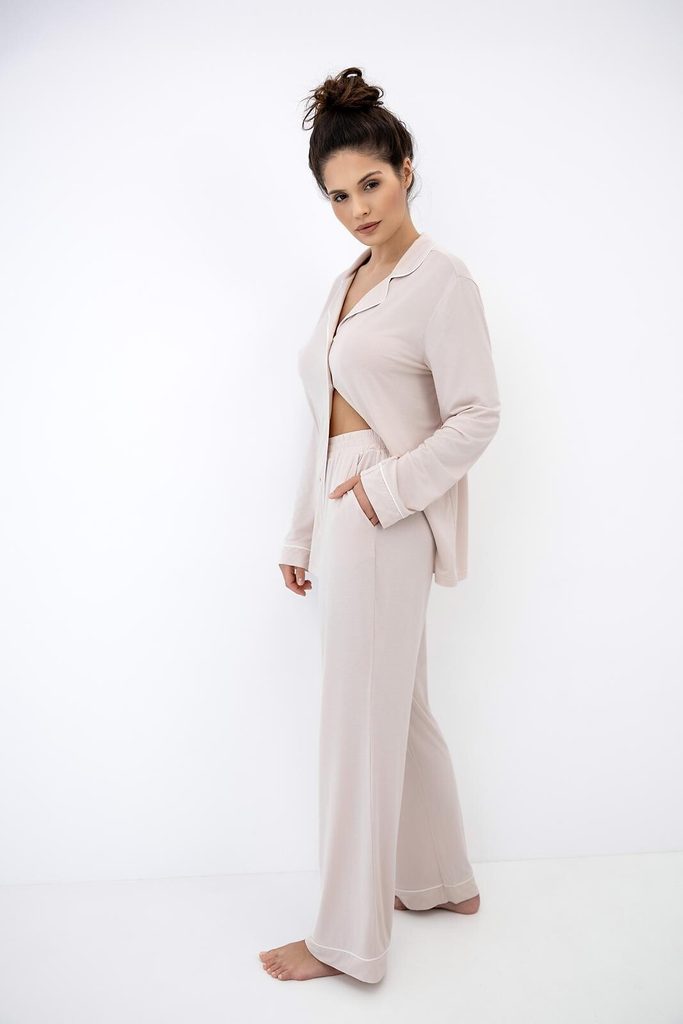Toto celopropínací dámské pyžamo je vyrobeno z vysoce kvalitního modalu, který je často označován za „druhou kůži“. Pokud hledáte kousek, ve kterém budete vypadat stylově i při snídani a zároveň si užijete maximální komfort během spánku, je toto pyžamo stvořeno právě pro vás.
