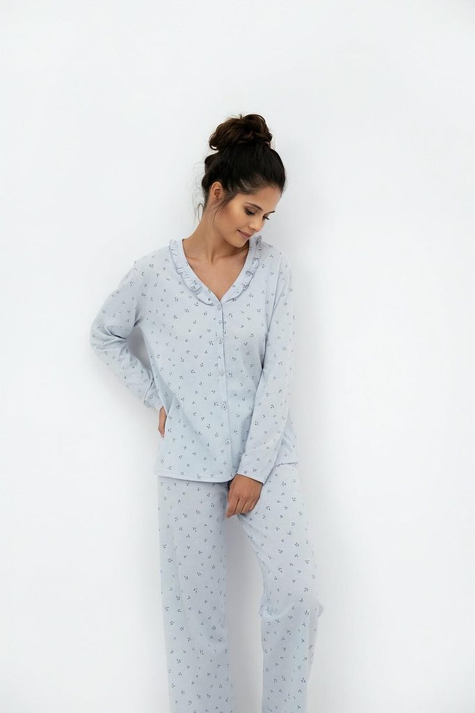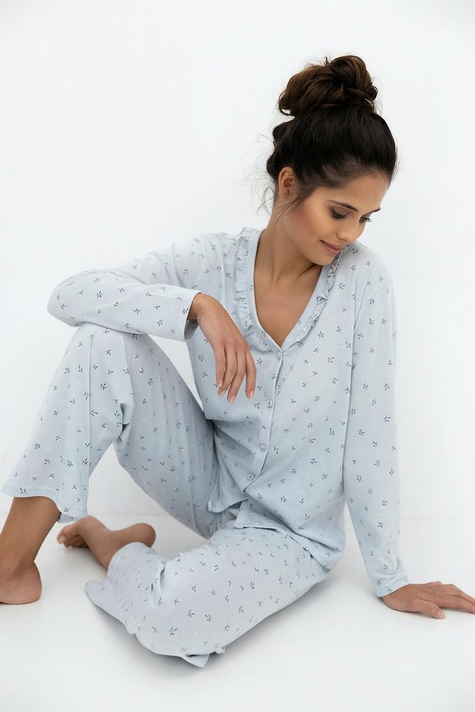 Vneste do své ložnice nádech romantiky a maximálního pohodlí. Toto pyžamo kombinuje tradiční košilový střih s jemnými detaily, které potěší každou ženu milující eleganci i v soukromí svého domova.