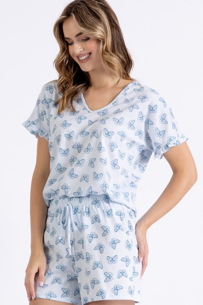 Dámské pyžamo s krátkým rukávem, vyrobené ze vzorované bavlny.
