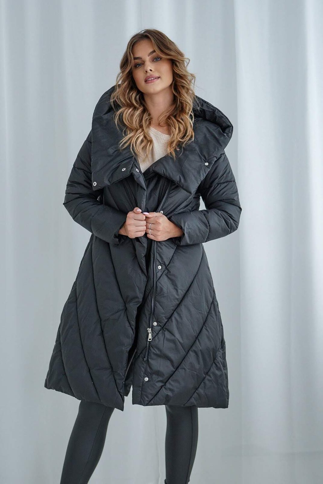 Kabátová bunda s proševem je dobrá volba pro studené dny. Model má zapínání na zip, kapsy a možnost stažení v pase, které umožní vytvarovat postavu. Elegantní vzhled umocní mohutná kožešinová kapuce a odepínací kožešinky na rukávech.