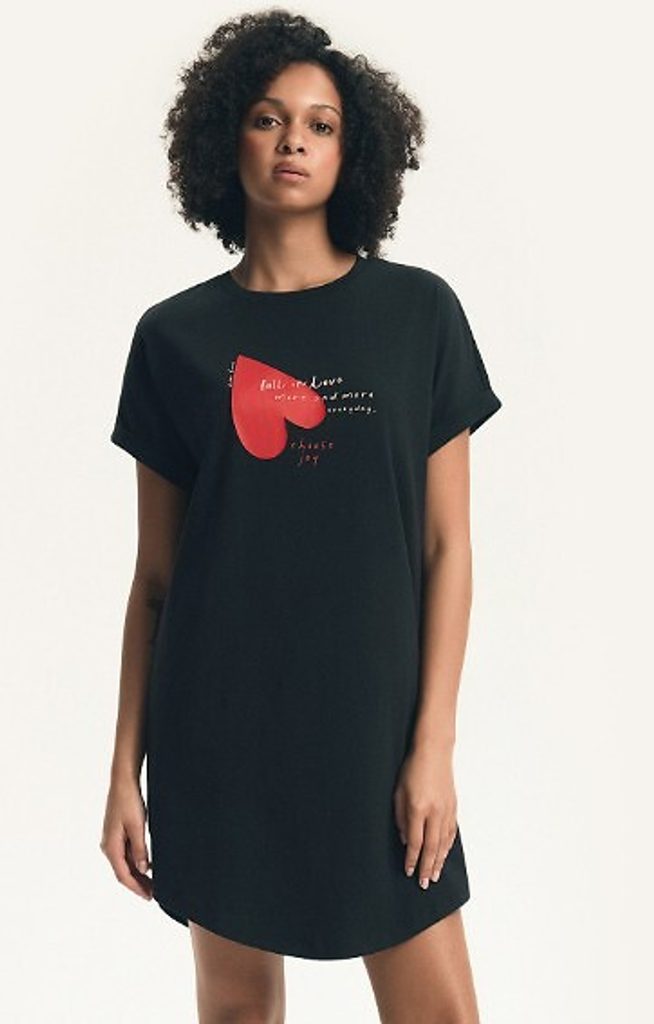 Přední stranu zdobí výrazný motiv červeného srdce s jemným nápisem.