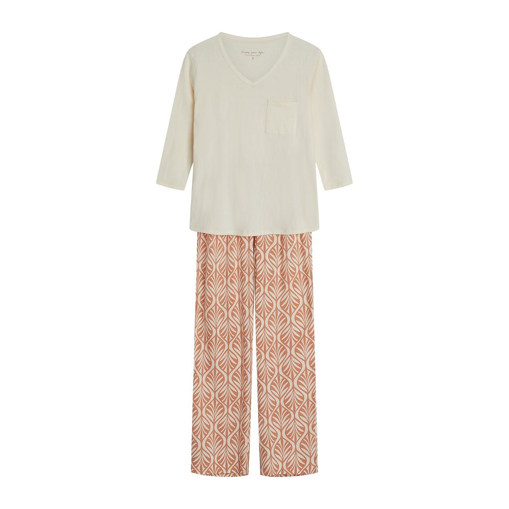 Dopřejte si maximální pohodlí v tomto elegantním dámském pyžamu, které je vyrobeno z vysoké kvality materiálů. Celý set je ušit z viskózové tkaniny, která je prodyšná, neuvěřitelně hebká na dotek a zajišťuje příjemný spánek i domácí odpočinek.