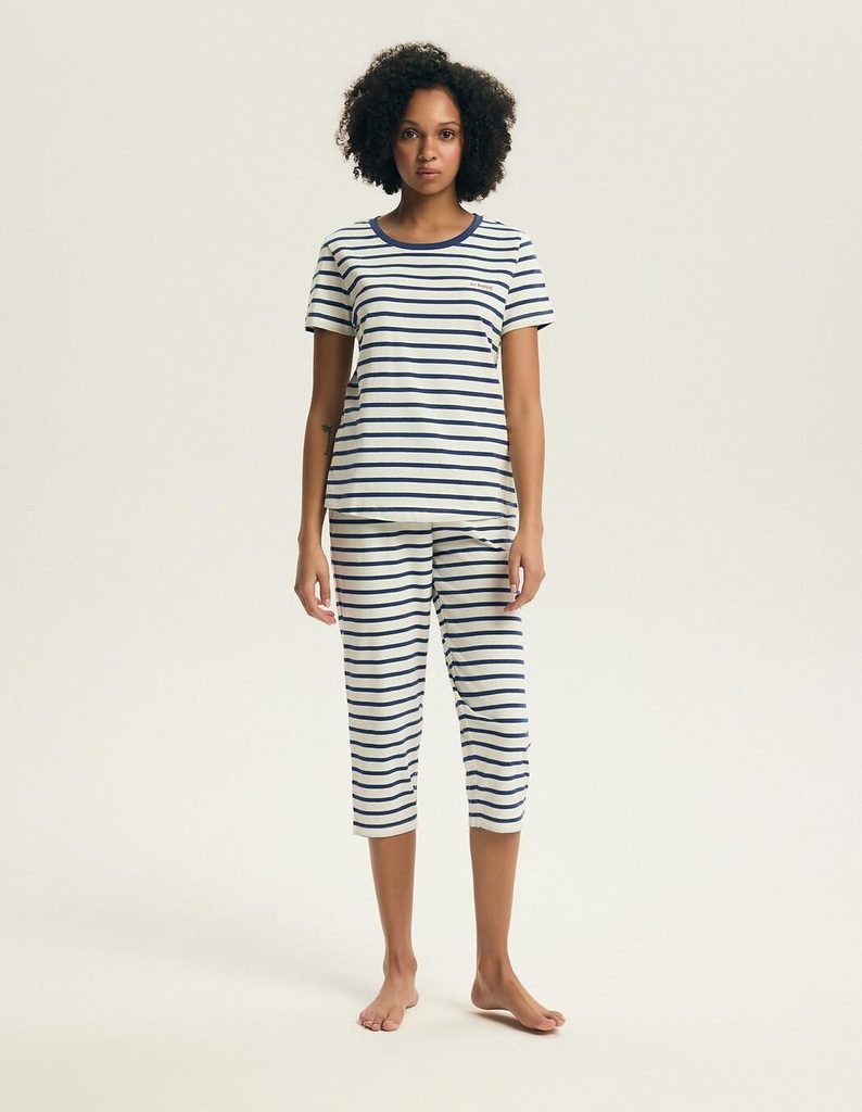 Vneste do svých večerů pozitivní energii s tímto stylovým pruhovaným kompletem. Kombinace kvalitní bavlny a hravého designu vám zajistí pohodlí, ve kterém se budete cítit skvěle hned po probuzení.