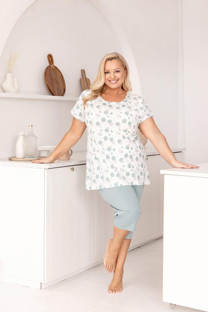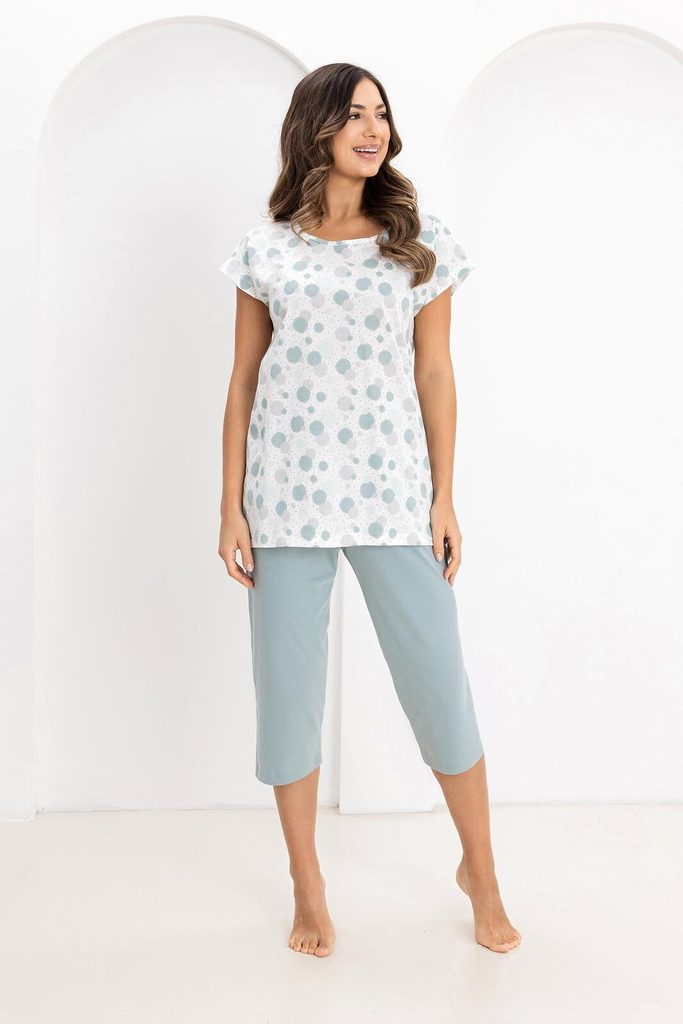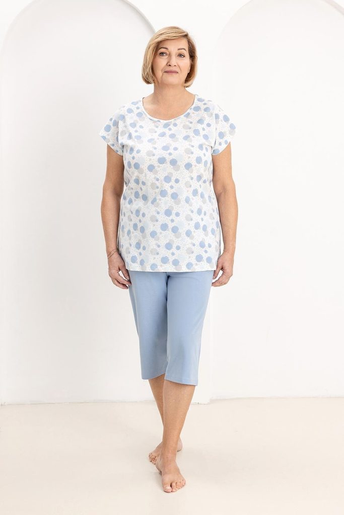 Rozjasněte své večery tímto hravým pyžamem z čisté bavlny. Veselý vzor barevných koleček dodává setu energii a optimistický vzhled, zatímco osvědčený střih se postará o to, abyste se i po náročném dni cítila jako v bavlnce.