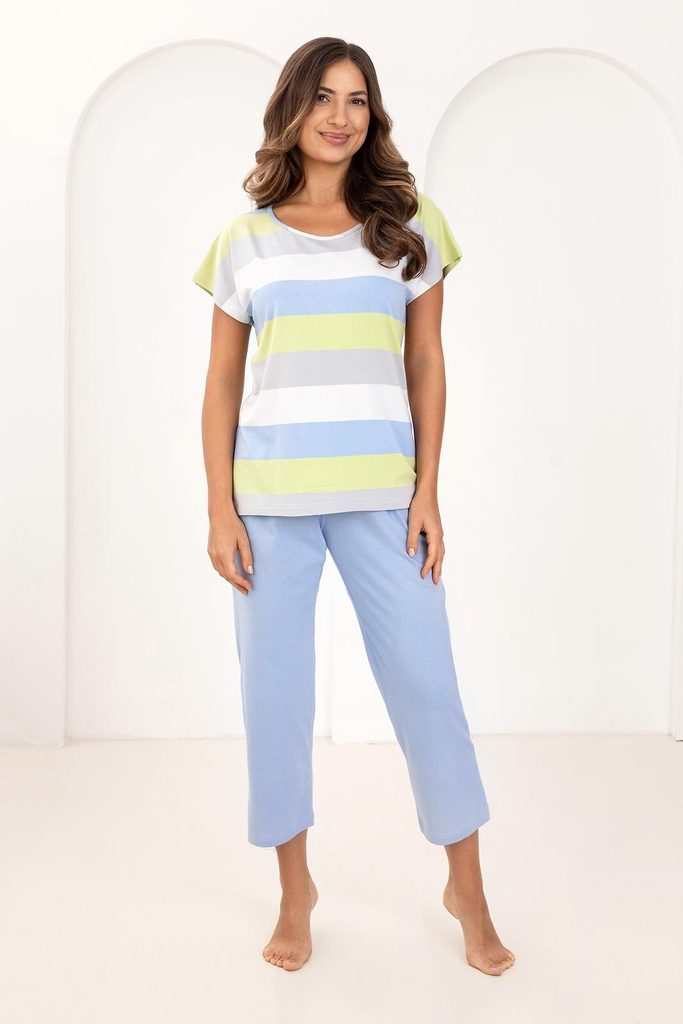 Dopřejte si pohodlí v klasickém stylu s tímto dámským pyžamem, které sází na osvědčenou kombinaci bavlny a nadčasového vzoru. Tento set je ideální volbou pro každodenní relaxaci i kvalitní spánek.