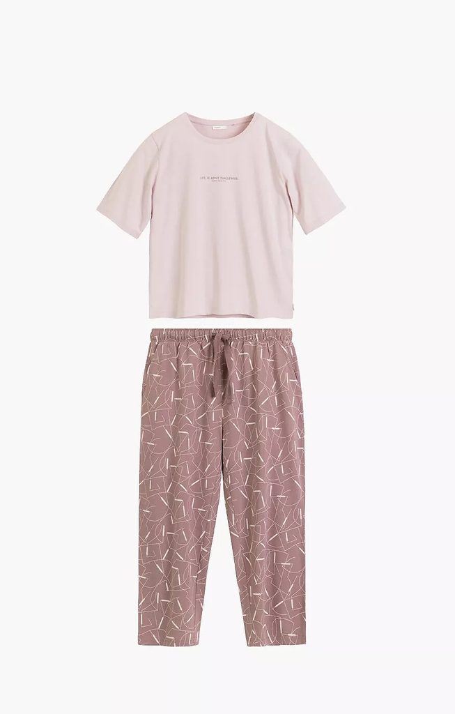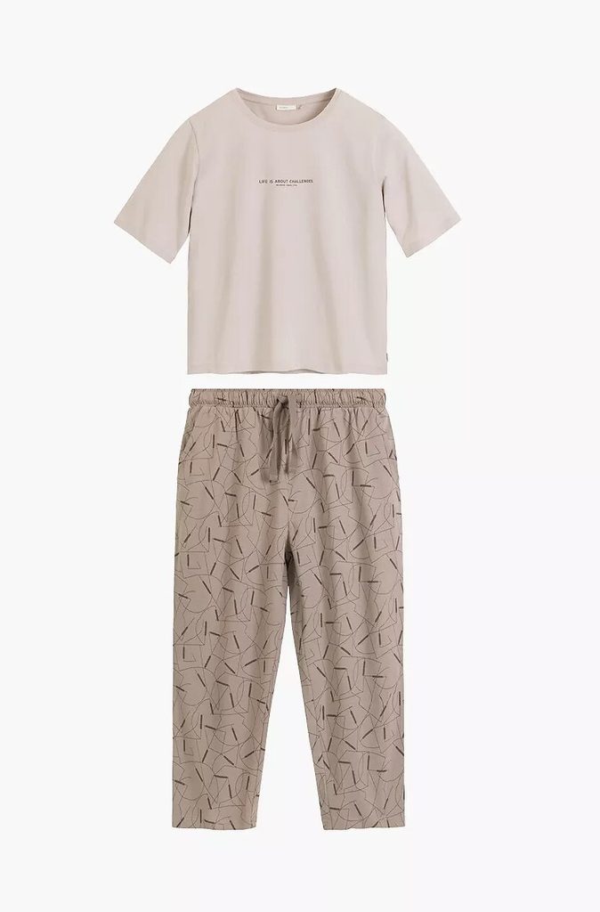 Tento bavlněný set nabízí ideální rovnováhu mezi krátkým rukávem a delšími nohavicemi. Je to praktická a stylová volba pro ženy, které preferují pohodlí přírodního materiálu.