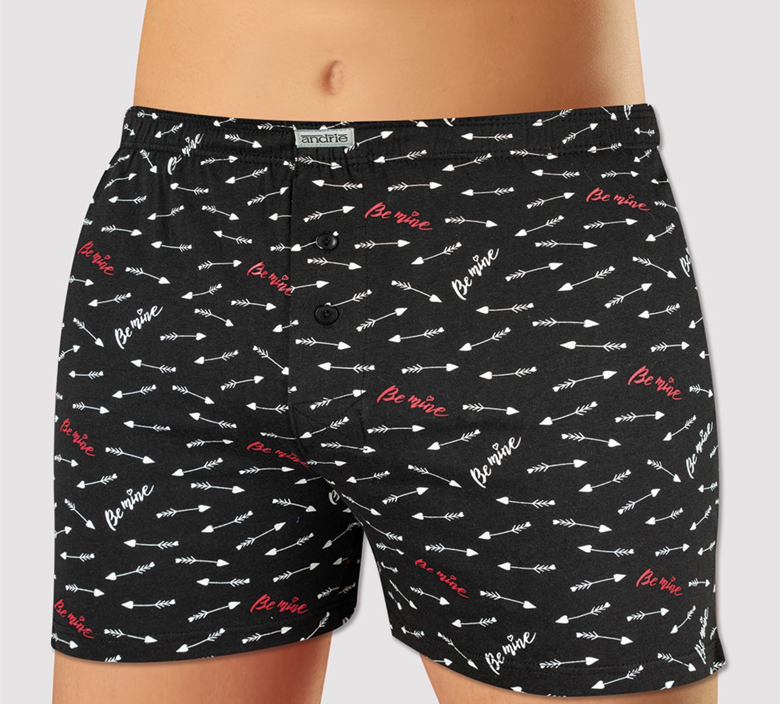 Elegantní černý podklad zdobený drobnými šípy a romantickými nápisy "Be mine" v bílé a červené barvě.